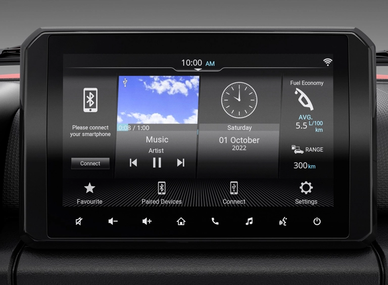 - Pantalla 9″ a color touch screen vínculo con smartphones (Apple CarPlay™ y Android Auto™)